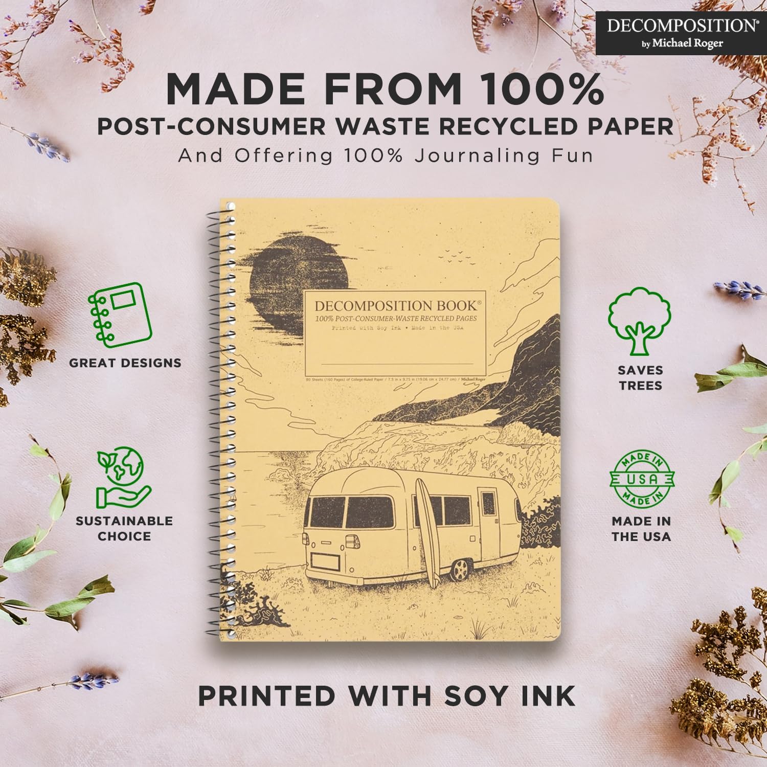 - Made in USA: Decomposition Books are American made, meaning we support American manufacturing jobs, ensure the shortest supply chain with the lightest-possible carbon footprint and can attest to the workplace protections domestic manufacturers must uphold.
