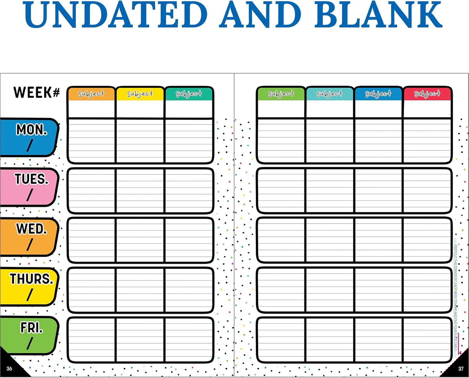 - Teacher Planner School Supplies: Organize lesson plans, tasks, checklist, schedules, grades, and more with Carson Dellosa’s vibrant, rainbow-themed 128-page undated Happy Place Teacher Planner.