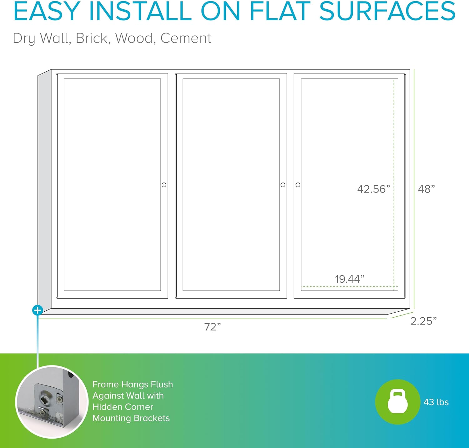 Ghent 48"x72" 3-Door indoor Enclosed Bulletin Board , Shatter Resistant, with Lock, Satin Aluminum Frame Natural Cork (PA34872K) Made in the USA