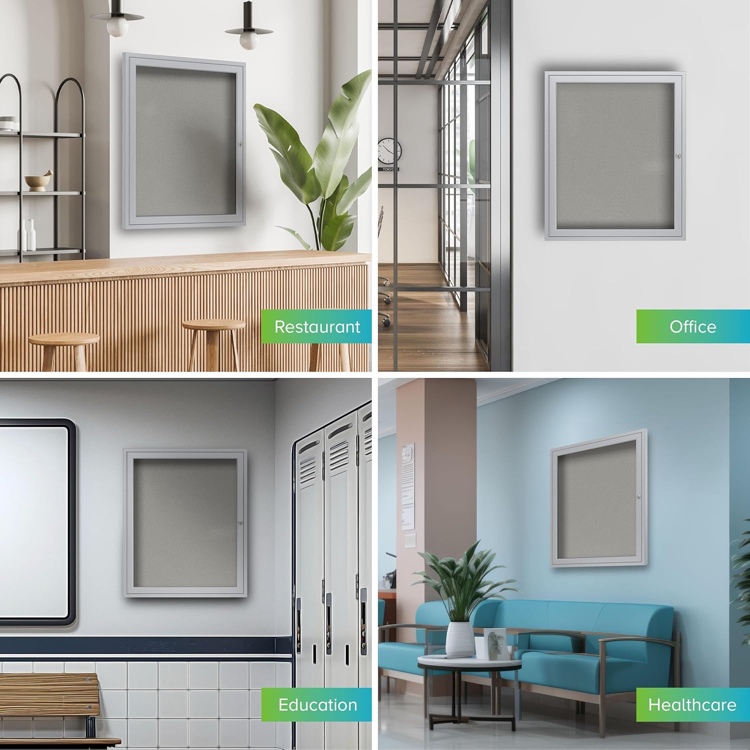 Ghent 36"x36" 1-Door Outdoor Enclosed Vinyl Bulletin Board, Shatter Resistant, with Lock, Satin Aluminum Frame - Silver (PA13636VX-193), Made in The USA