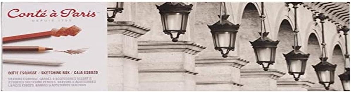 Conté à Paris 50126 Sketching Box Set 12 Pastels of Assorted Colours + 3 Pencils of Assorted Colours + Accessories
