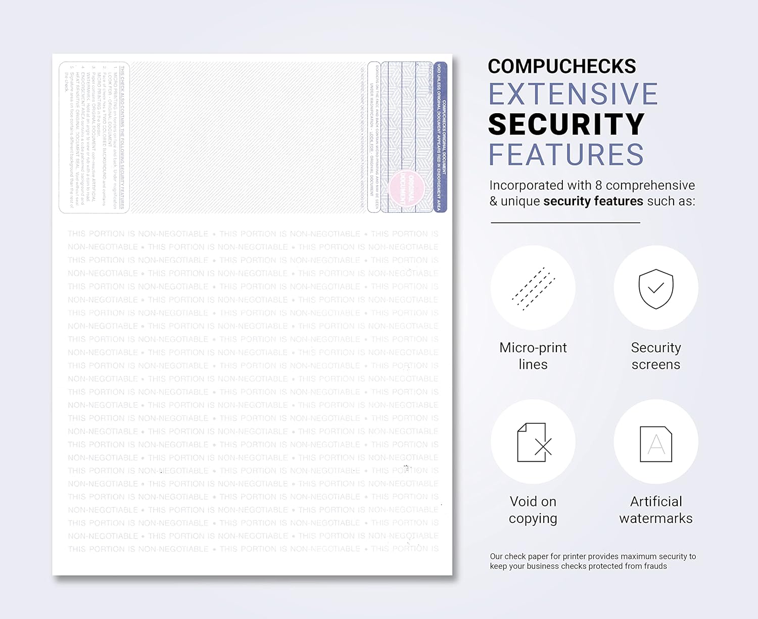 - The blank check paper high security incorporates multiple anti-fraud security features such as micro-print lines, security screens, and artificial watermarks, and other high security features, making it hard to copy the blank check stock quickbooks by fraudsters.