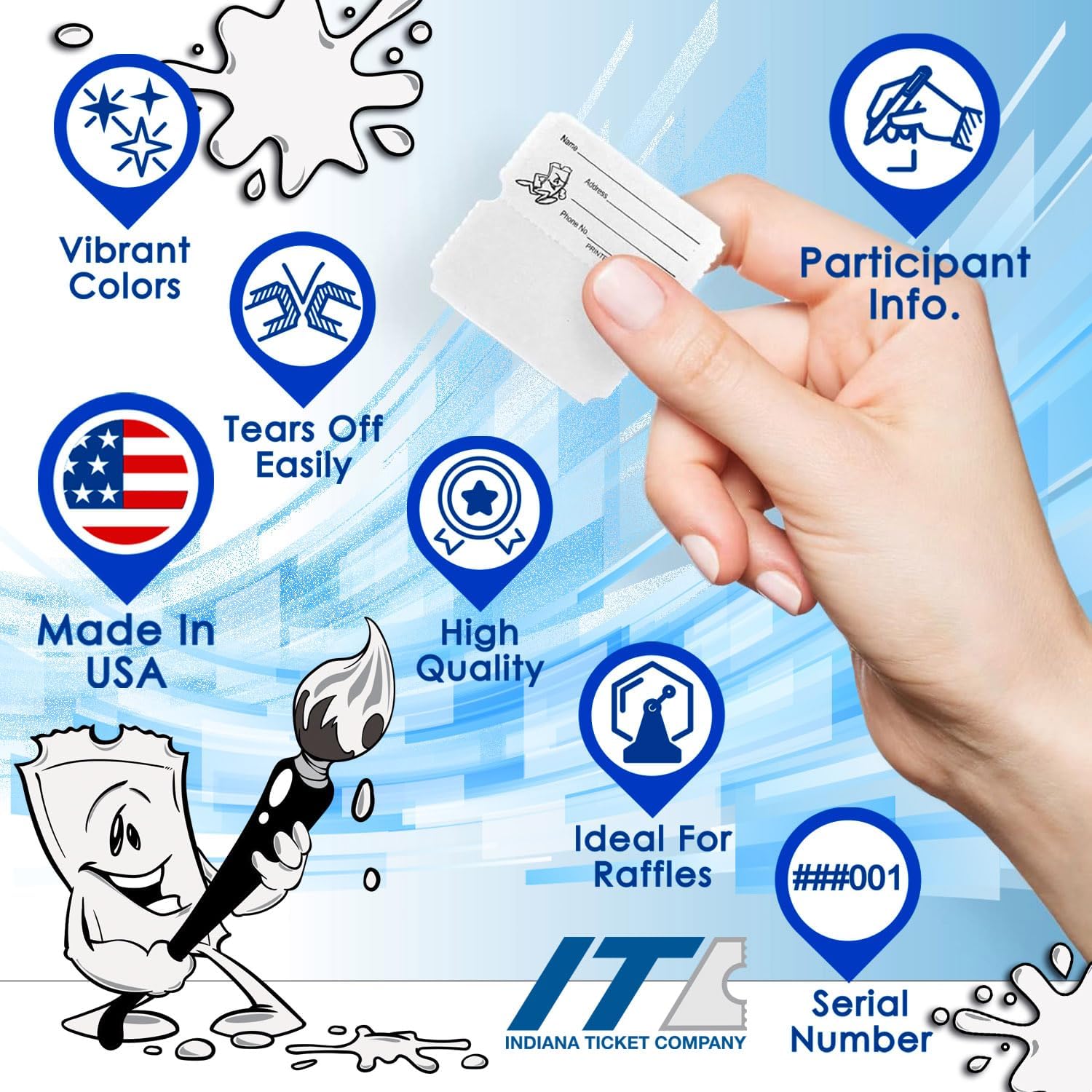 - HIGH QUALITY TICKETS – Indiana Ticket Co. raffle ticket rolls include 2,000 double stub raffle tickets for 50/50 raffles, giveaways, carnivals, drawings, door prizes, events, trade shows and more.