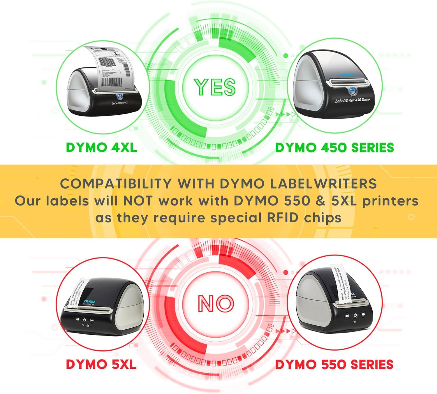 - Compatible with DYMO LabelWriters, CoStar LabelWriters and Rollo printers. Our Dymo compatible labels will NOT work with: Dymo 550 Turbo Printer and 5XL Label Printer