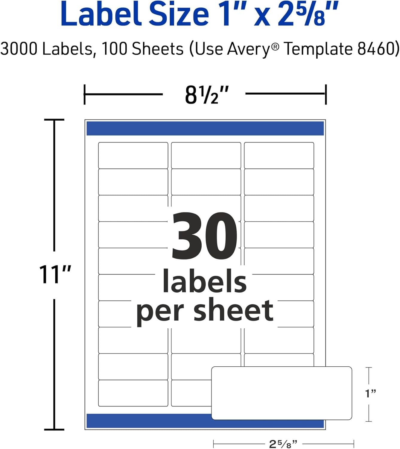 Avery Easy Peel Printable Address Labels with Sure Feed, 1" x 2-5/8" Customizable Stickers, White, 3,000 Blank Mailing Labels per Pack, Great for Mailing, Shipping, and More (5-Pack of 8460)