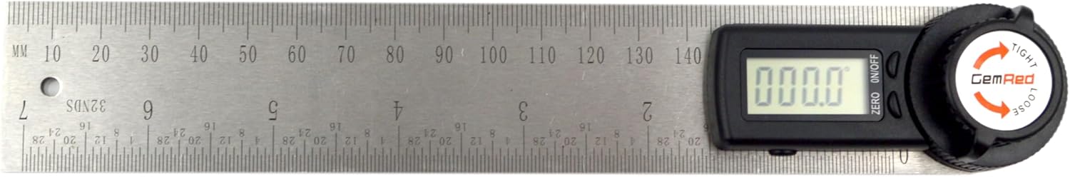 GemRed 82305 Digital Angle Finder GemRed Protractor Stainless steel 7inch 200mm (Black Button)