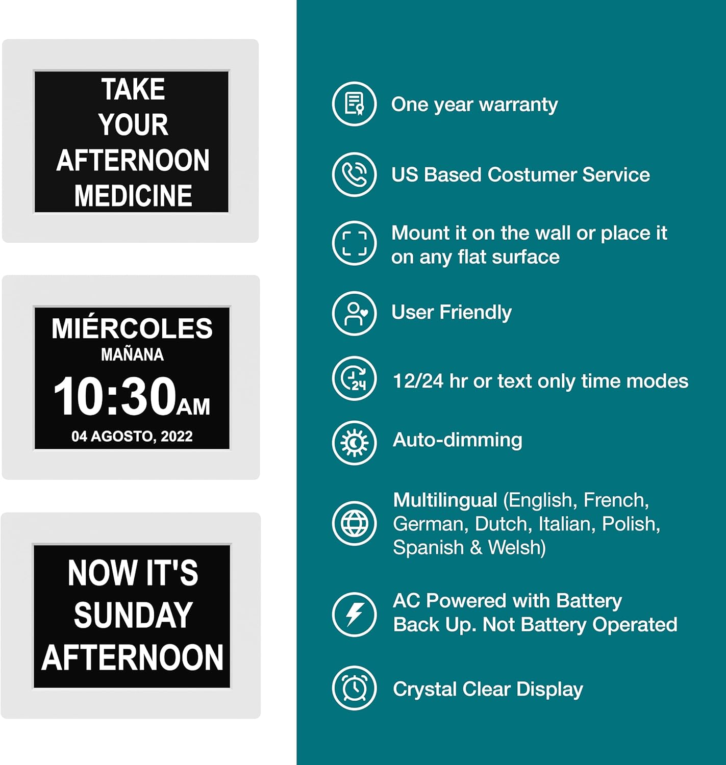 - Designed with Durable Material: The dementia clock is built to withstand daily use, making it a reliable and long-lasting aid for elderly individuals with dementia or Alzheimer's. The robust design of the clocks for seniors ensures that it can withstand accidental drops and knocks.