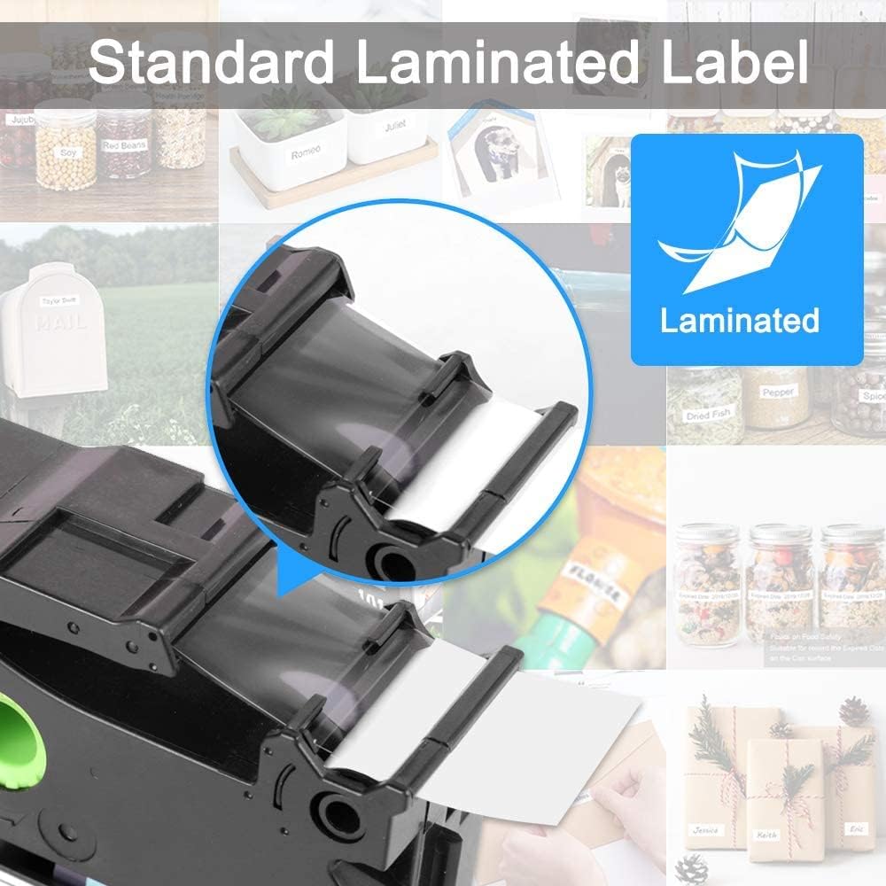 - Anycolor Replacement for P touch TZe tz label tape is ideal to print clear and durable labels. These tapes are easy to install and use. The label has a unique split back making it easy to peel and apply. No sticky residue remains when the labels are removed.
