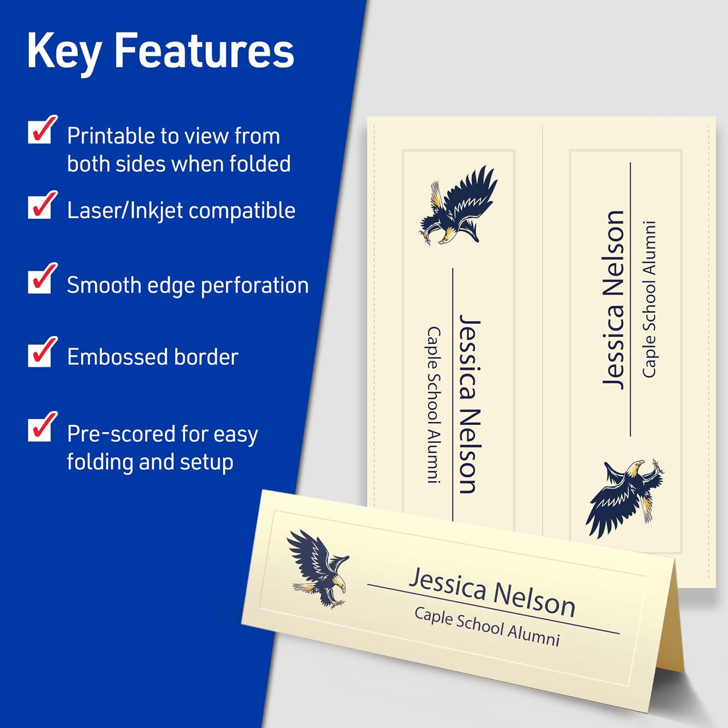 - Ensure a stable and reliable set up with place cards and table cards made from sturdy 65 lbs / 176 gsm embossed ivory cardstock that keeps cards standing tall