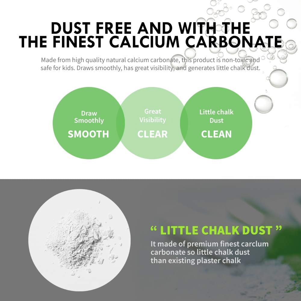 - NO MISTAKES: Our chalks erase easily leaving little to no residue on the chalkboard when removed. Chalk generates little dust and fallout minimizing chances of smudging and messes when writing or drawing