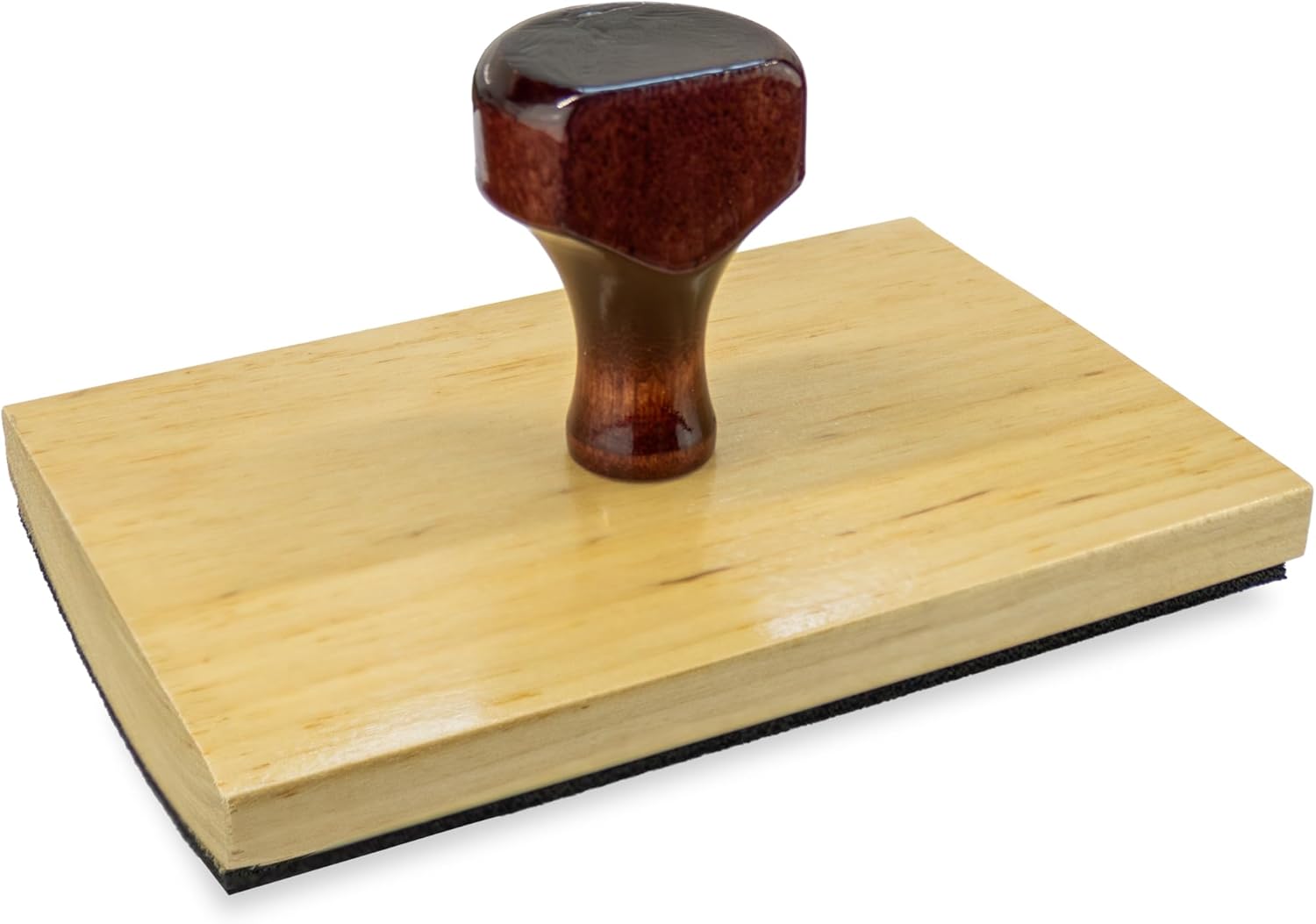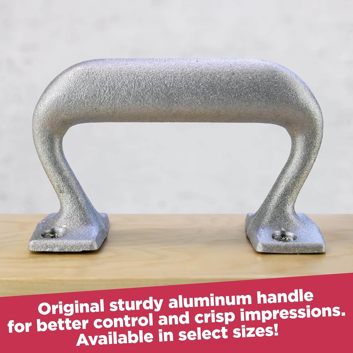 - Ideal for large oversized stamping. Impressions are made by rocking the stamp on the surface.