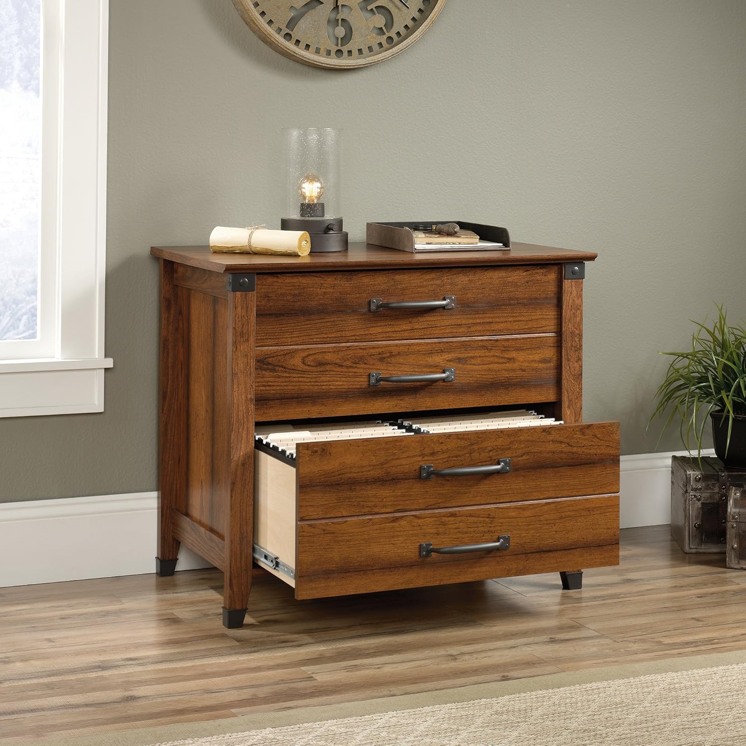 Sauder Carson Forge 2 Drawer Lateral File Cabinet, Rustic Vintage Style Filing Drawers, in Washington Cherry