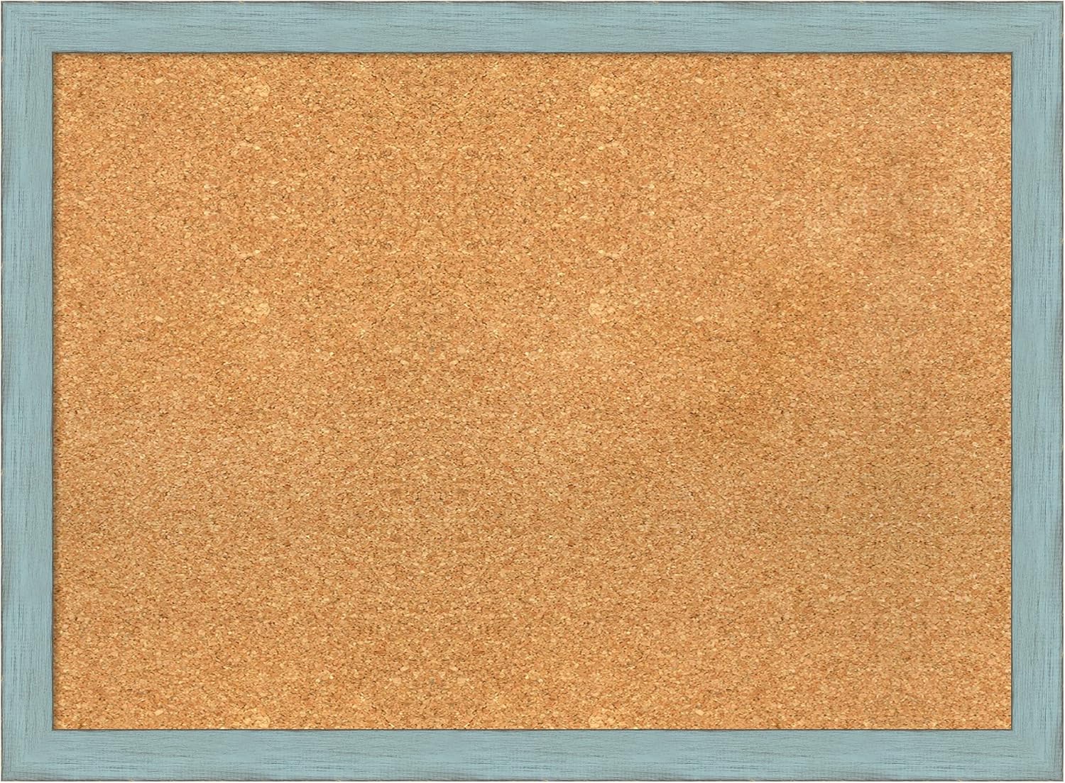 Amanti Art Natural Cork Board for Wall, 22x30 Vision Board with Blue Wood Frame, Medium Corkboard Office Decor for Home Organization, Rustic Farmhouse Corkboard Pinboard to display items for home