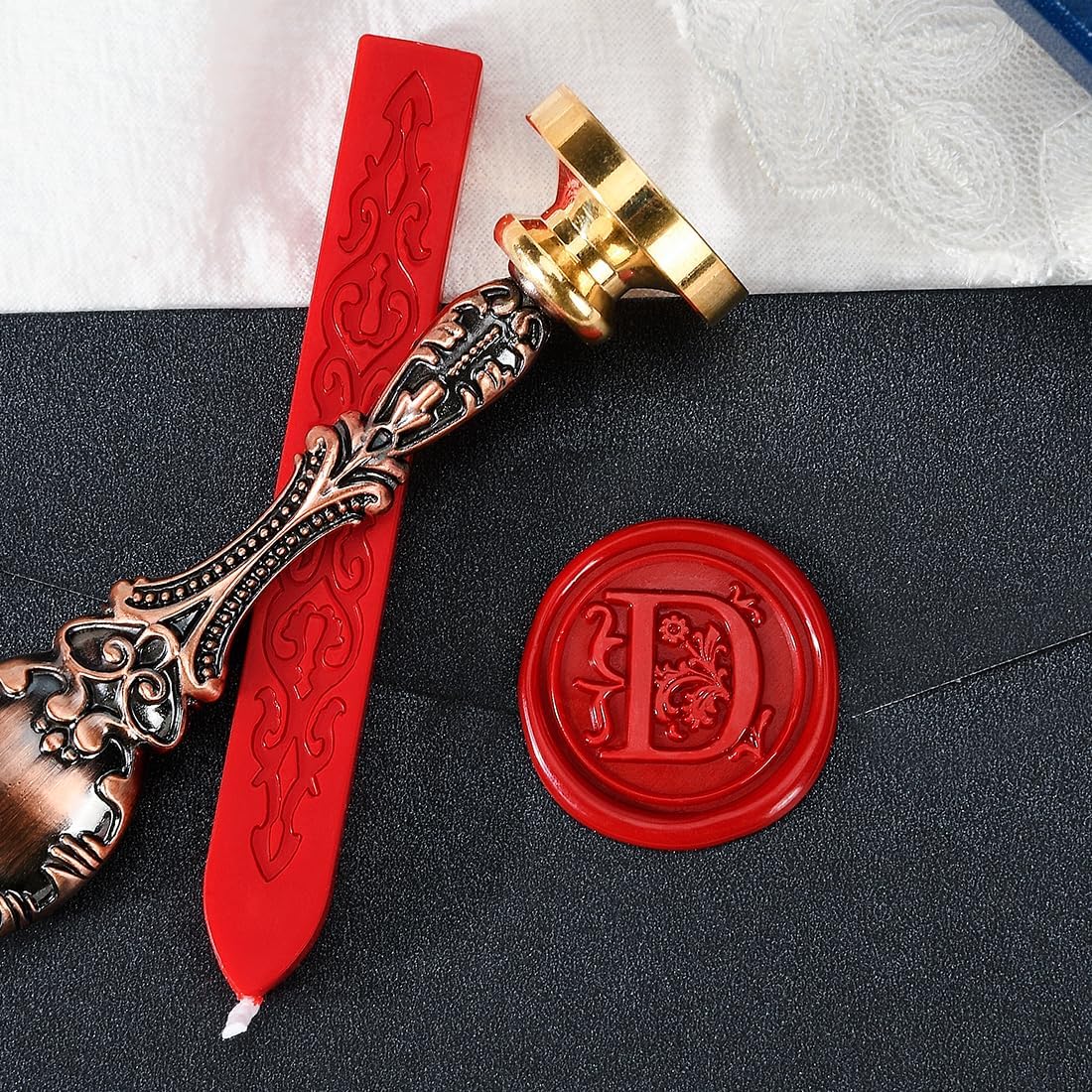 - Package: 1x Red Wick Wax Candle, 1x Letter "D" Engraved Stamp with antique gorgeous brass handle. It will come with a Fine Gift box, Perfect Gift for women friends or family
