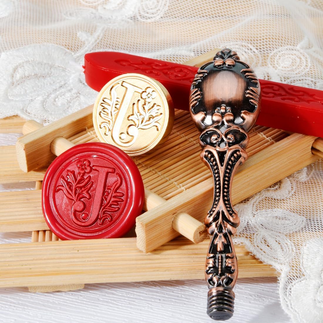 - Package: 1x Red Wick Wax Candle, 1x Letter "J" Engraved Stamp with antique gorgeous brass handle. It will come with a Fine Gift box, Perfect Gift for women friends or family