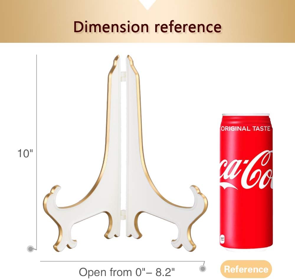 Artliving 10" Decorative Plate Stand Holder Plastic Picture Easel Display Stand Picture Frame Stand White Gold (2 Pack)