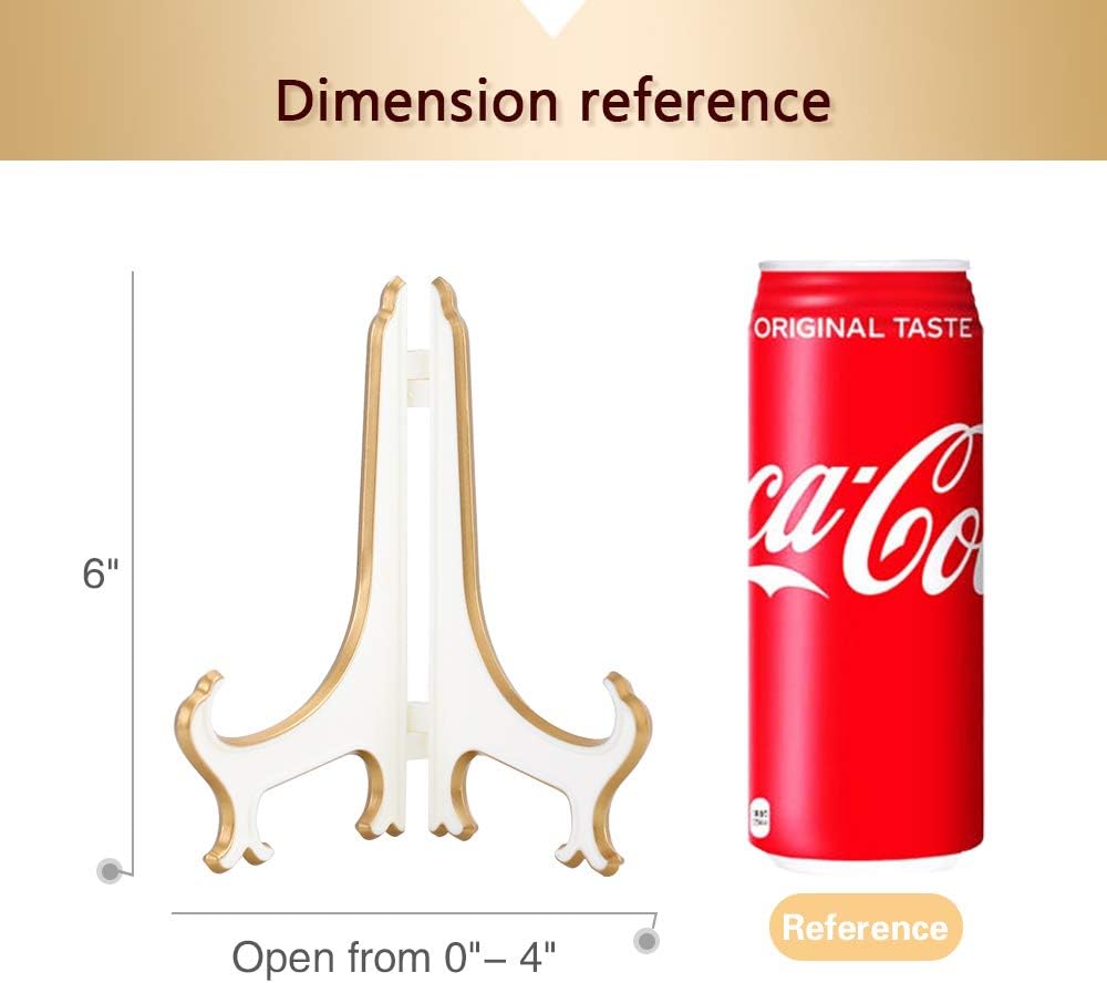 Artliving 6" Decorative Plate Stand Holder Plastic Picture Easel Display Stand Picture Frame Stand White Gold (2 Pack)