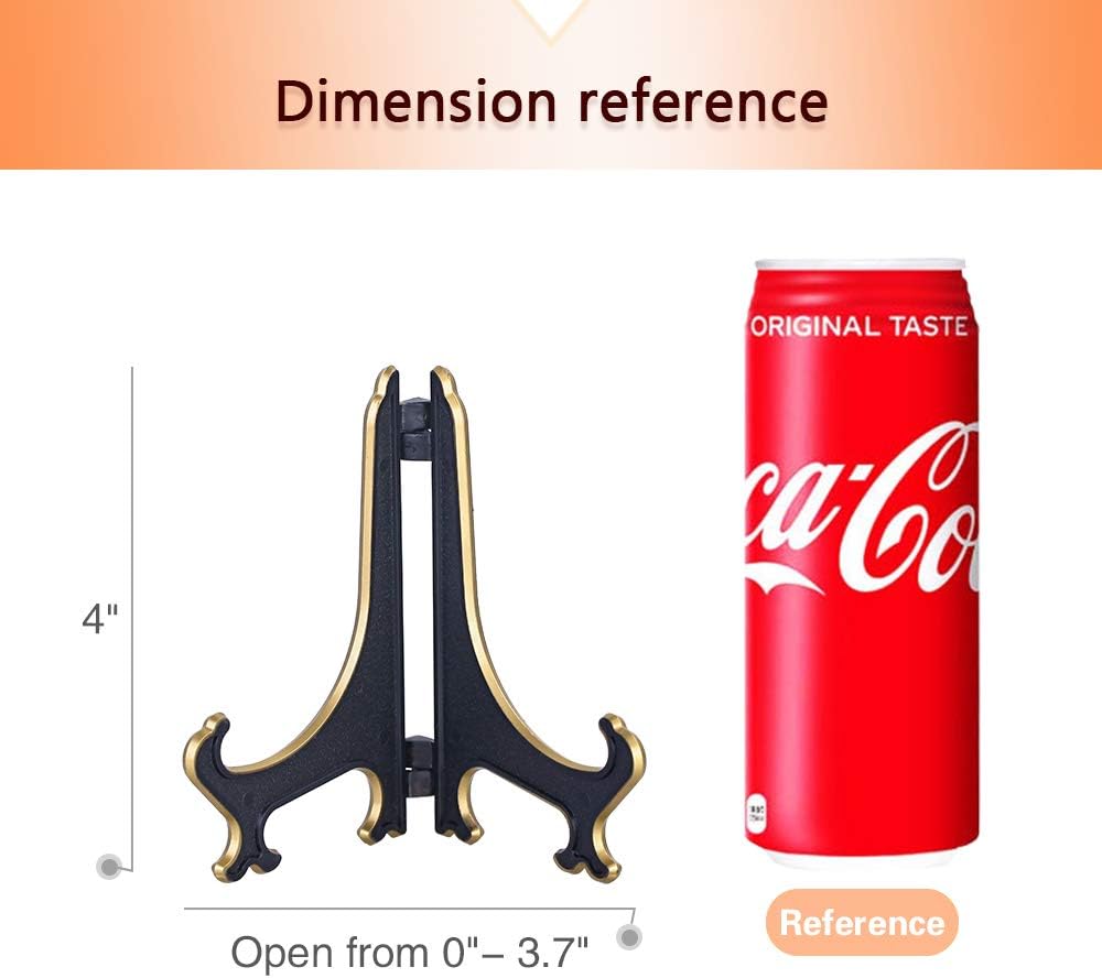 Artliving 4" Decorative Plate Stand Holder Plastic Picture Easel Display Stand Picture Frame Stand Black Gold