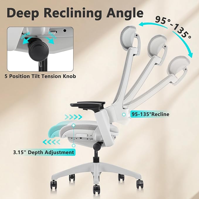 - Fully Adjustment Design Office Chair: 3D Adjustable ergonomic computer chair ,You can adjust the seat height and depth, the armrest height and angle, the lumbar support height, the backrest tilt angles and tilt tension. All these designs aim to help you find a comfortable sitting position just for you.