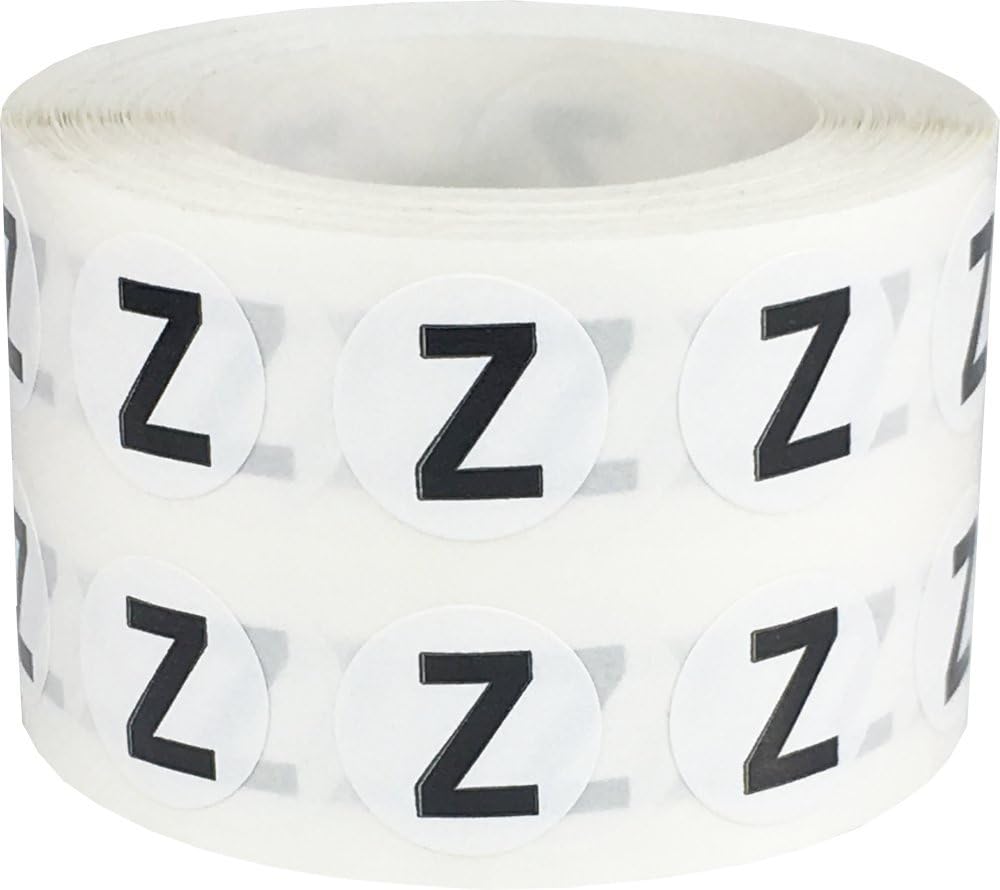 Letter Z Inventory Labels .5 Inch Round Circle Dots 1,000 Adhesive Stickers