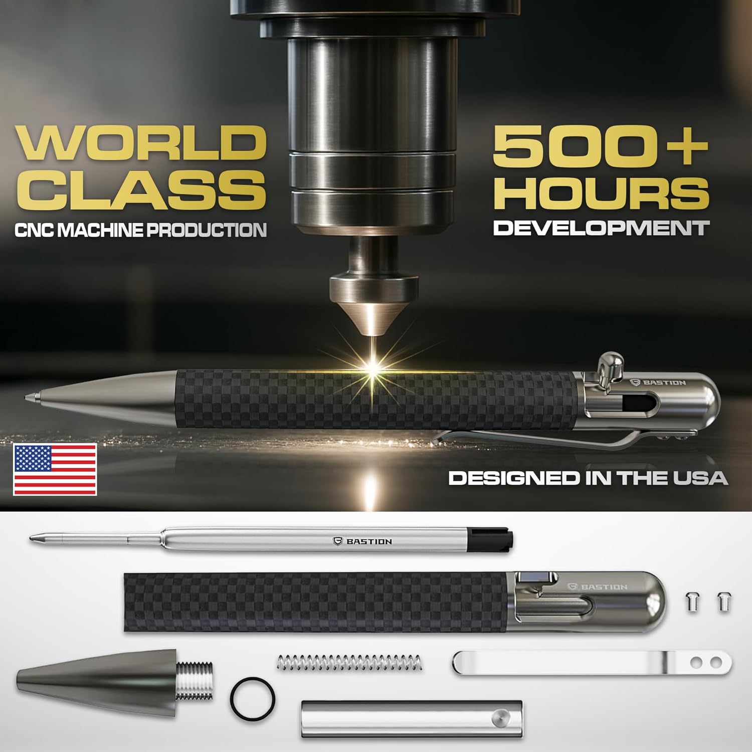 BASTION® Luxury Carbon Fiber Bolt Action Pen, Durable Professional Ballpoint Pen for Travel, School and Work Birthday Gift Idea - Carbon Fiber and Stainless Steel