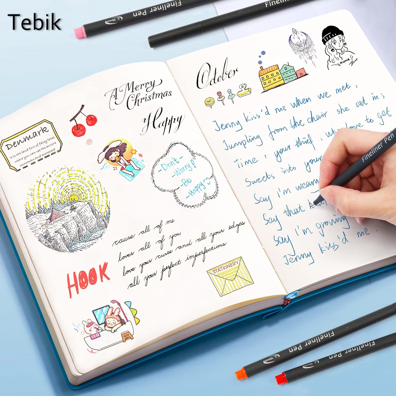- 0.38mm Extra Fine Tip for Details: Our 0.38mm fine-tipped pens are great for creating a colorful journal, writing smoothly. We specifically designed them to contain the ink to the paper on which you are drawing, so the ink you put on one page won’t bleed through to the next in your journal unless the paper you are using is particularly thin.