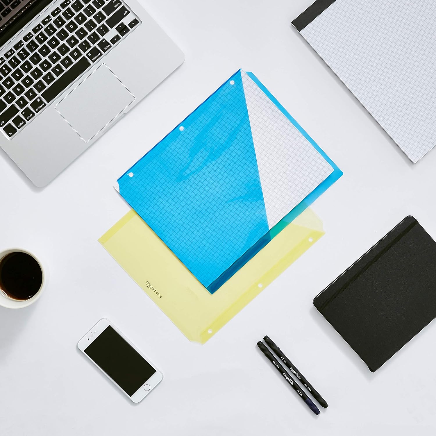 Amazon Basics Binder Organizer Poly Jacket, 3 Hole Punch, Assorted Colors, Pack of 5