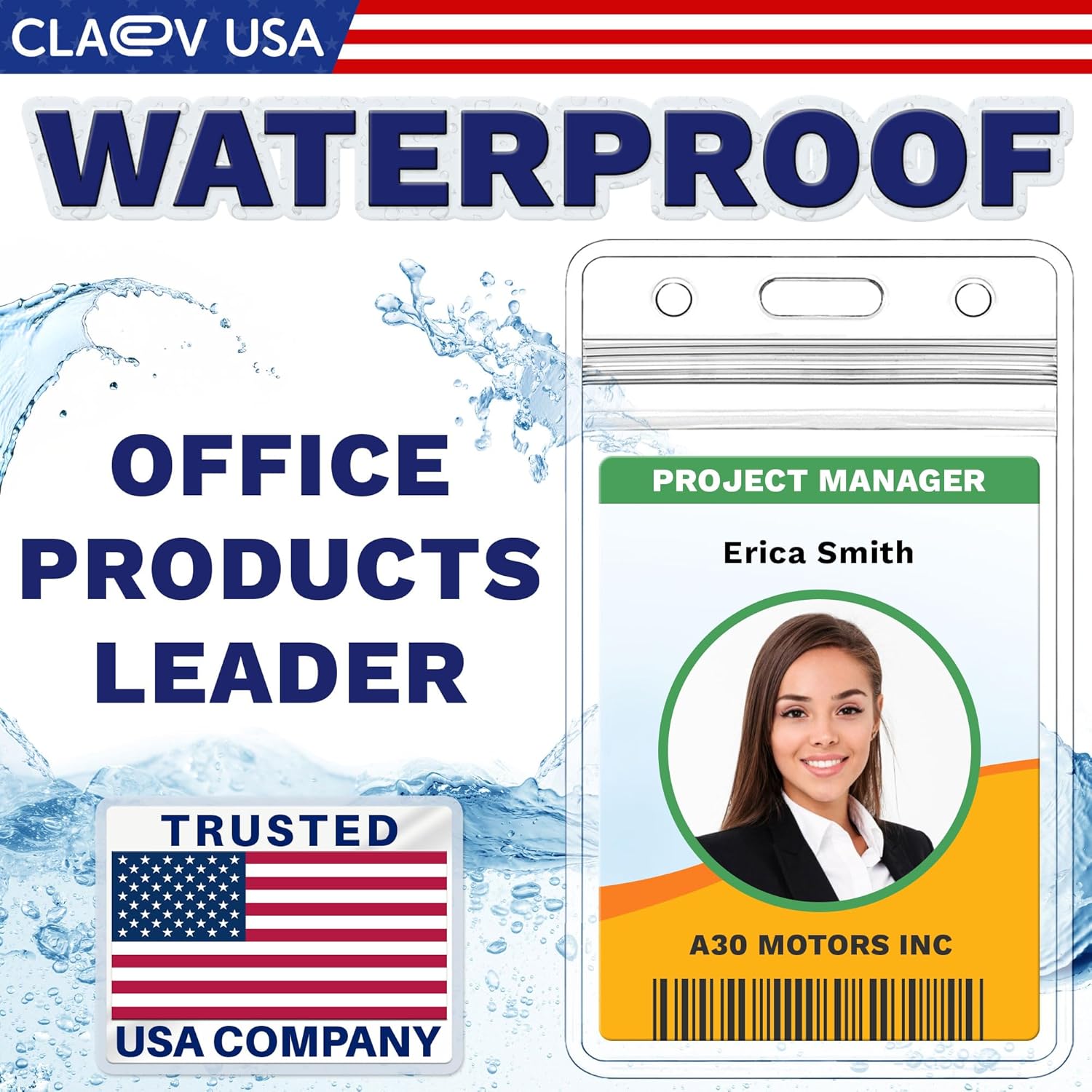 Claev Fast Seal Vertical ID Badge Holders (2.25x3.5 inch Standard, 100 Pack), Clear Waterproof Plastic Name Card Holders for Conferences, Conventions, Offices & Schools