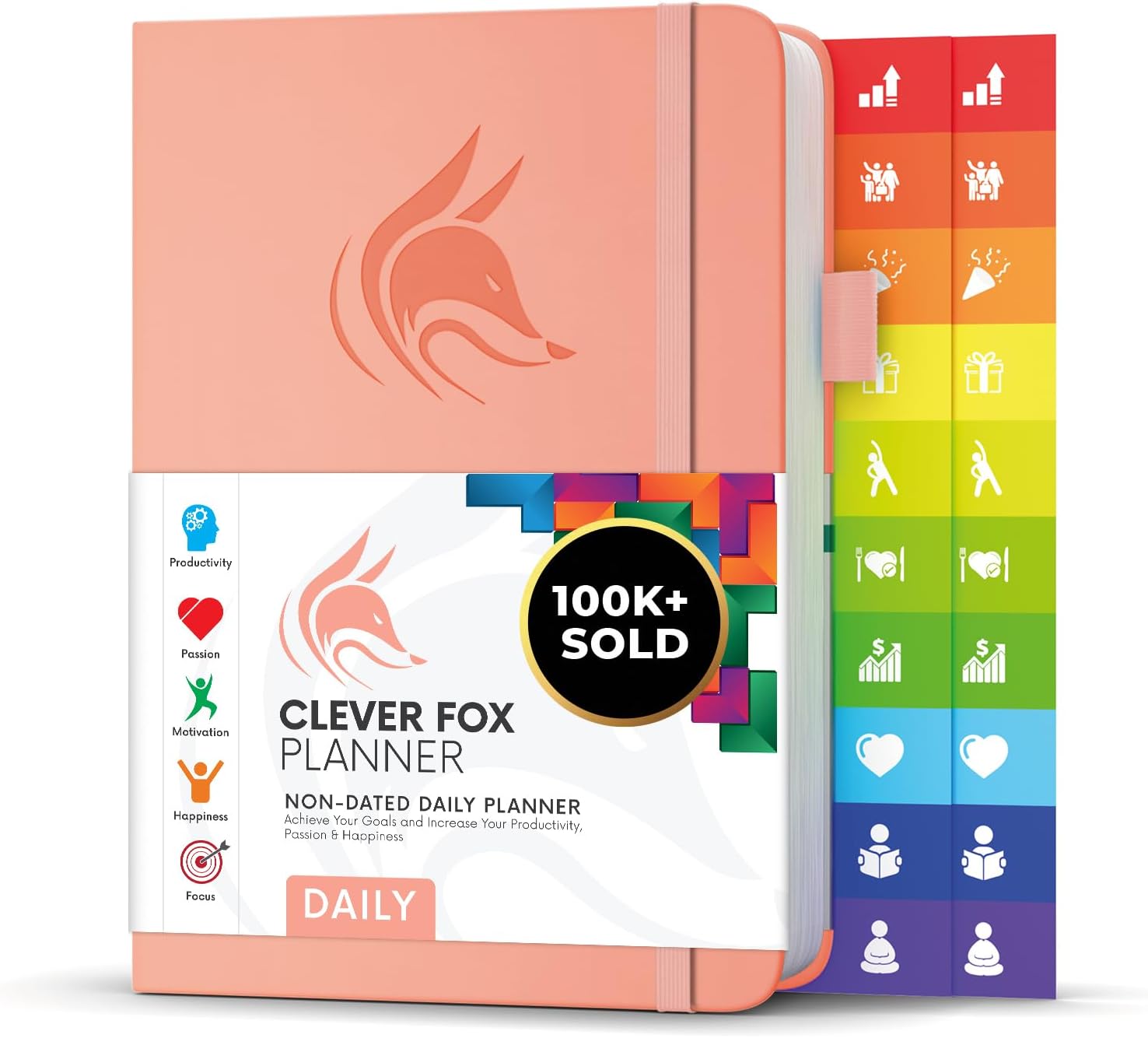 Clever Fox Daily Planner – Undated Planning Notebook with Hourly Schedule & To-Do List – Personal Day Task & Work Organizer, 6 Months (Peach Pink)