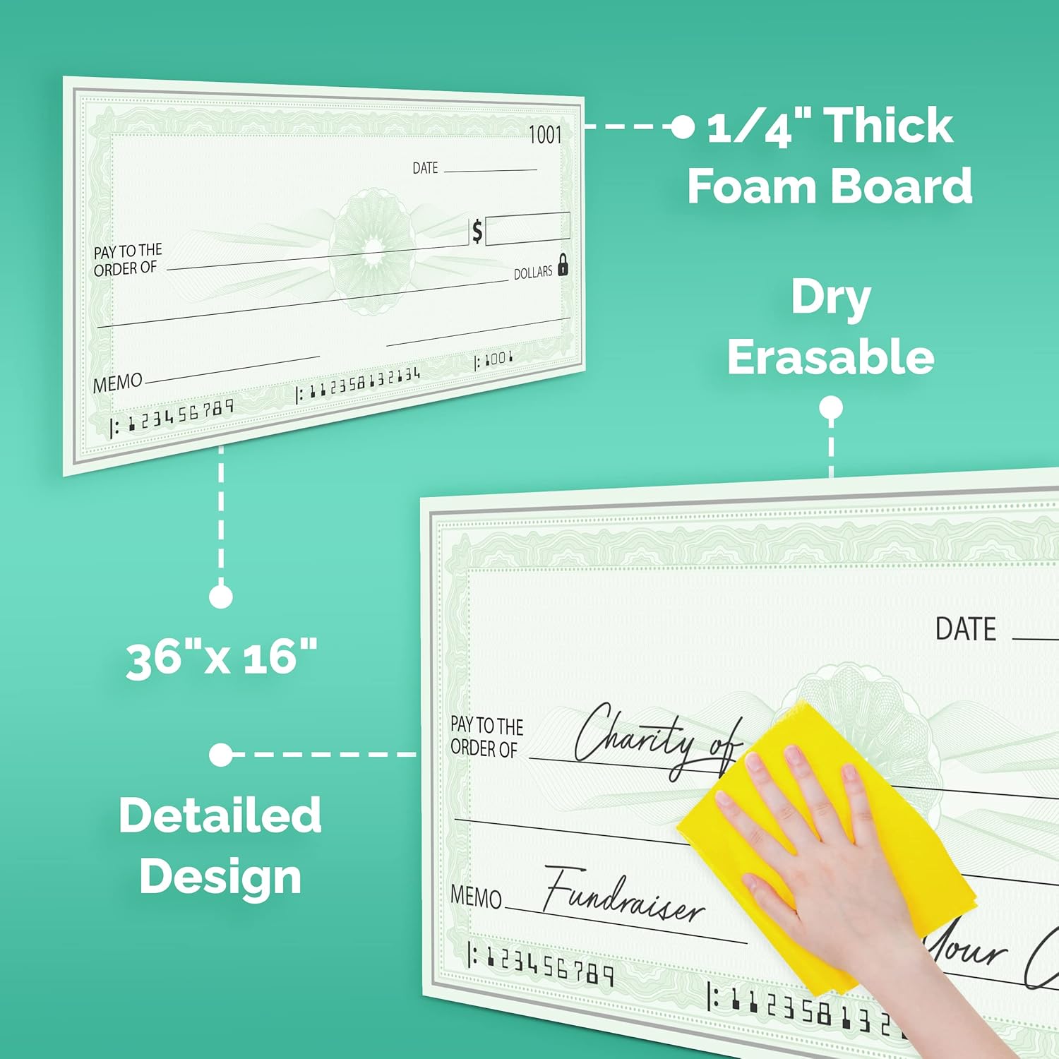 Giant Check | 36x16 Dry Erase Big Check for Presentations - Oversized Fake Check Award