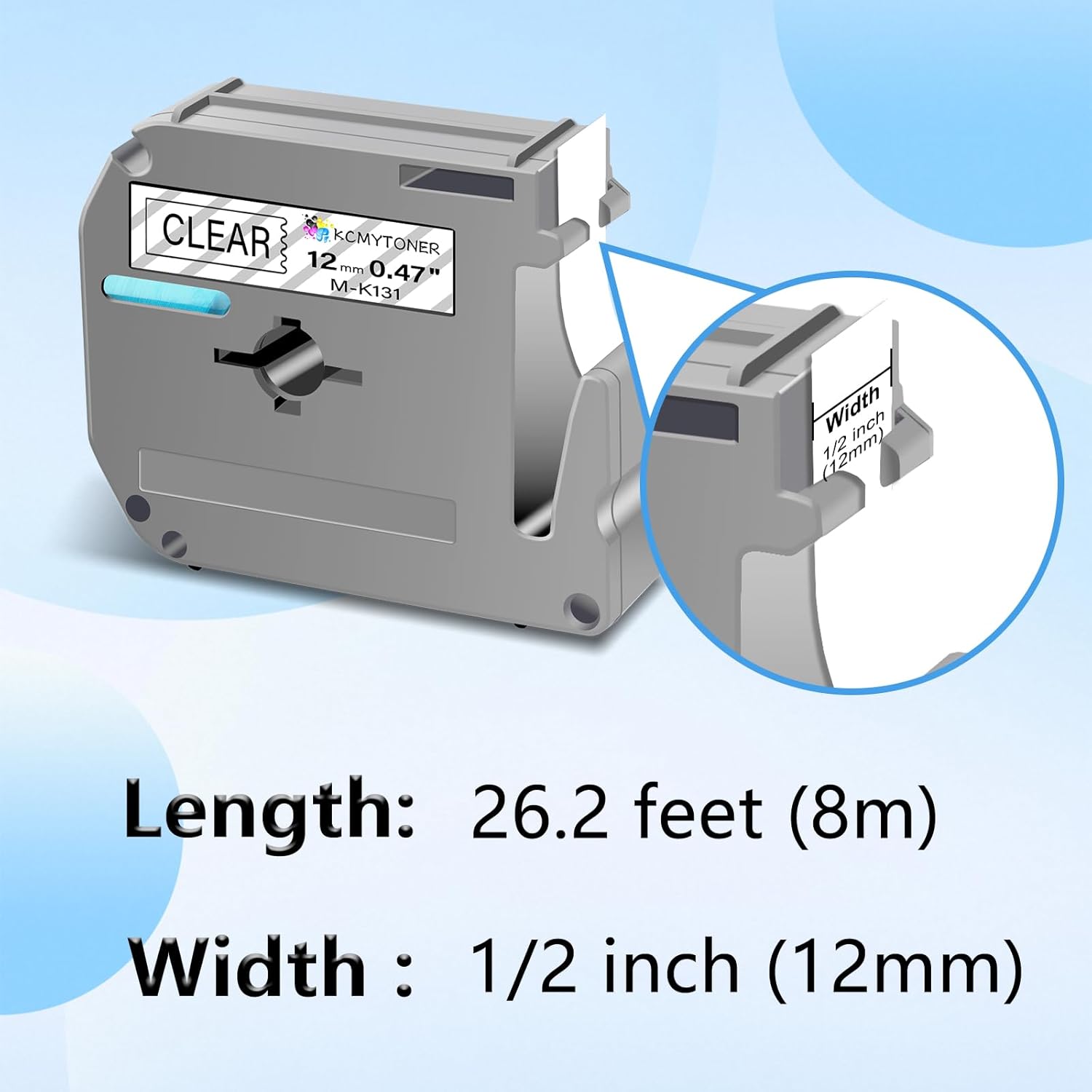 - Package includes: 3 pack compatible for brother p-touch mk131 m131 m-k131 m-k131s non-laminated label maker tape. Color: black ink on clear tape. Width: 1/2 inch (12mm), length: 26.2 feet (8m).
