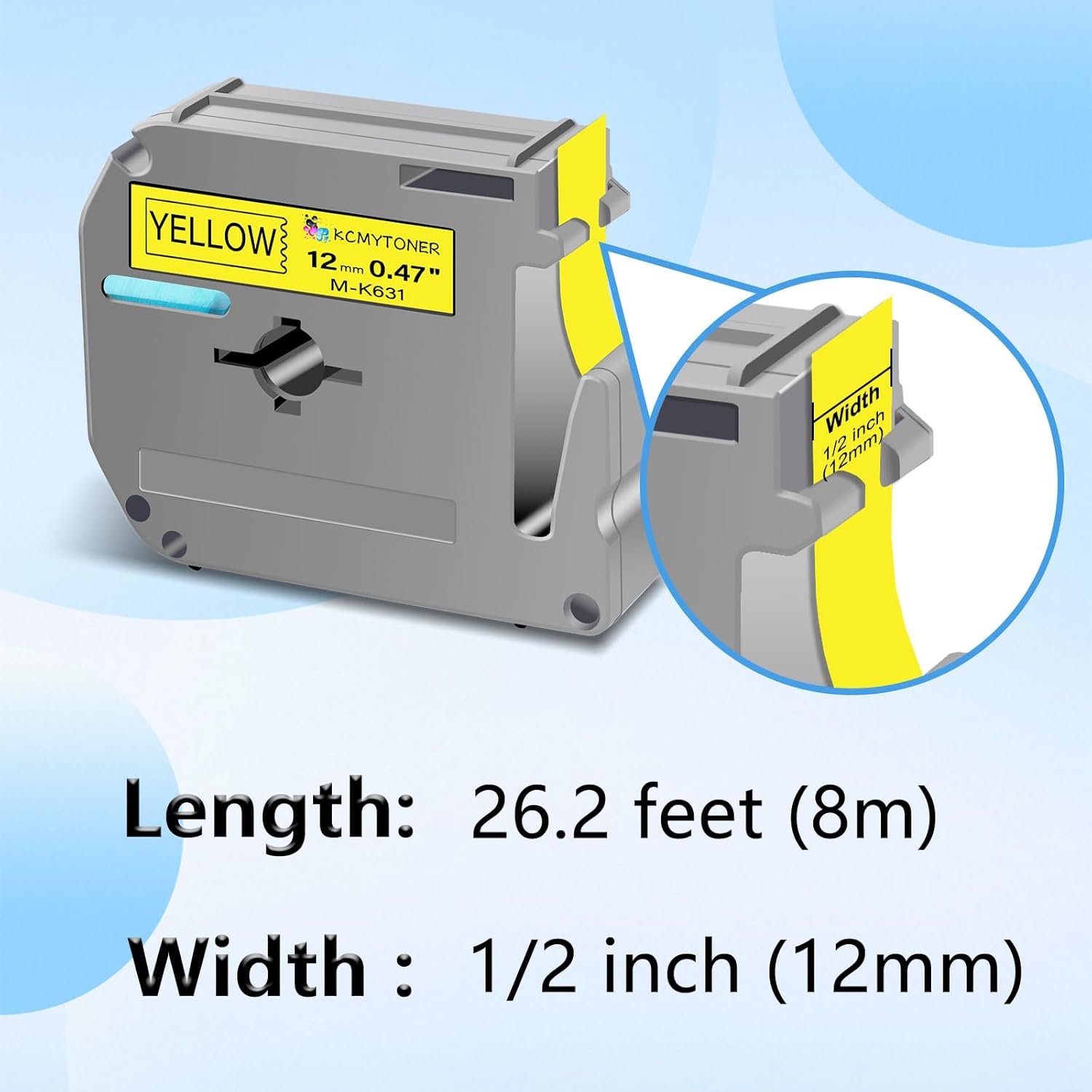 - Package includes: 3 pack compatible for brother p-touch mk631 m631 m-k631 m-k631s non-laminated label maker tape. Color: black ink on yellow tape. Width: 1/2 inch (12mm), length: 26.2 feet (8m).
