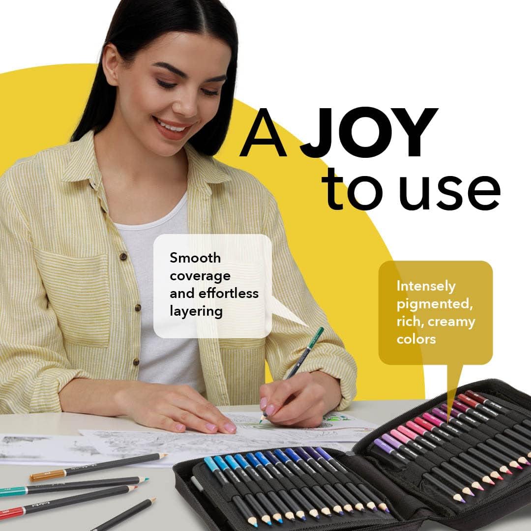Castle Art Supplies - Set of 72 colored pencils with soft core for artists, professionals and adult colorists, sturdy zipper case for easy carrying