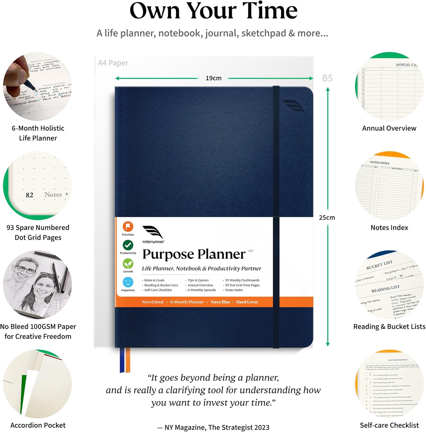 Roterunner Purpose Planner Notebook B5 7.5”x9.8” Undated Planner 2025 Daily Weekly and Monthly Productivity Goal Setting Tool for Work Home ADHD Planner for Adults Self Care Journal