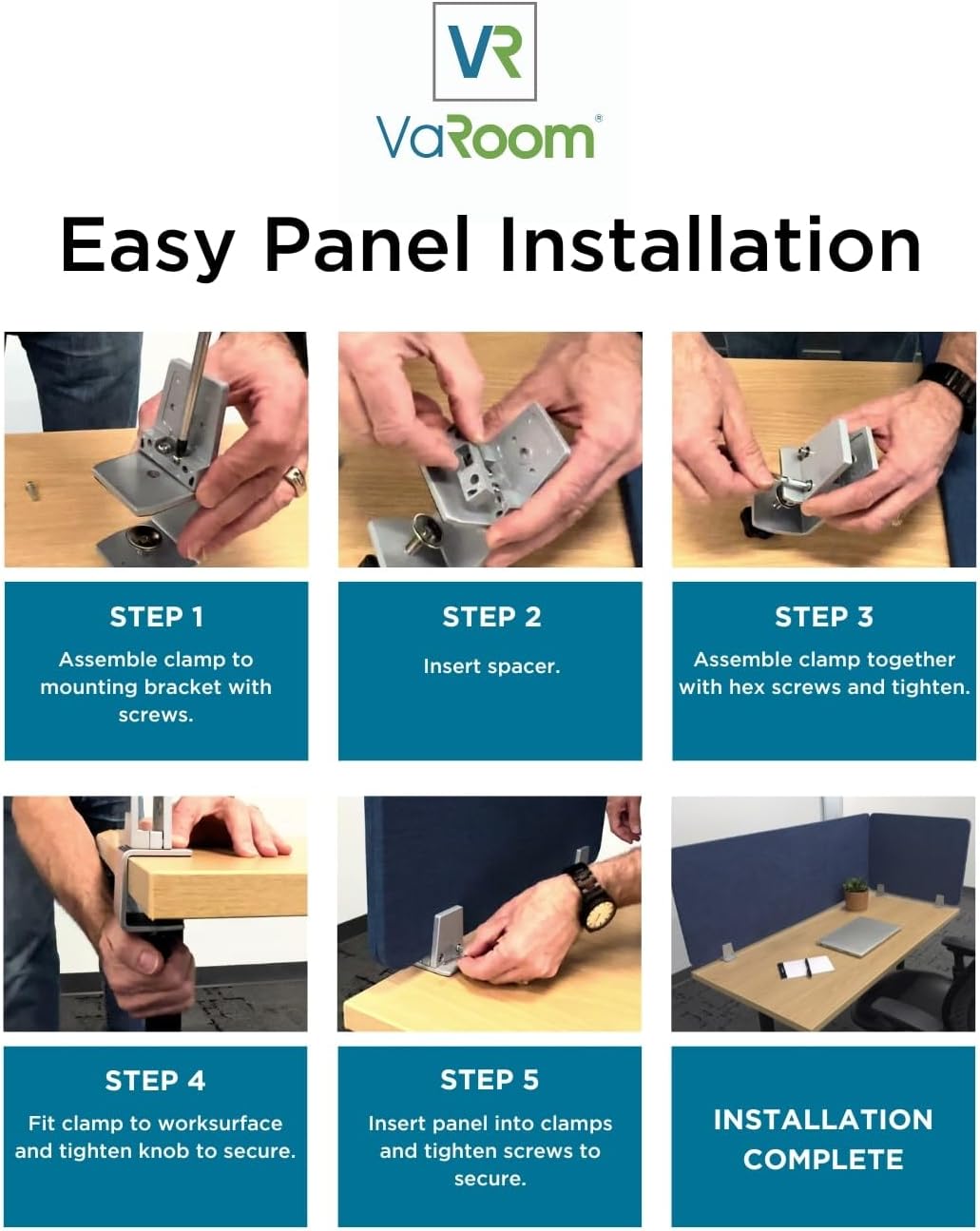 - EASY/FLEXIBLE FIT: Removable knob clamp fits table or desktop from 3/4” to 2” thick – NO damage to desk. NO drilling required. Panels can be easily removed and can be relocated. Two mounting clamps are included, clamp position on panel is adjustable.