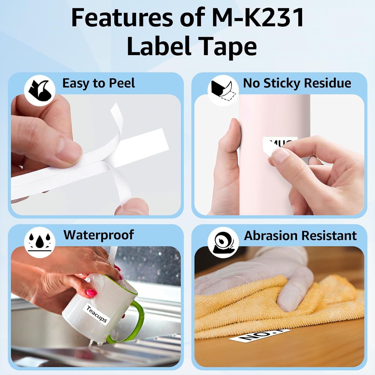 - Non-Laminated durable labels: water-resistant, fade-resistant, abrasion-resistant, chemical-resistant, temperature-resistant. They are an ideal solution for labeling tasks including files, folders, classify files, shelves, kitchen, books, supply cabinets, accessories, etc.