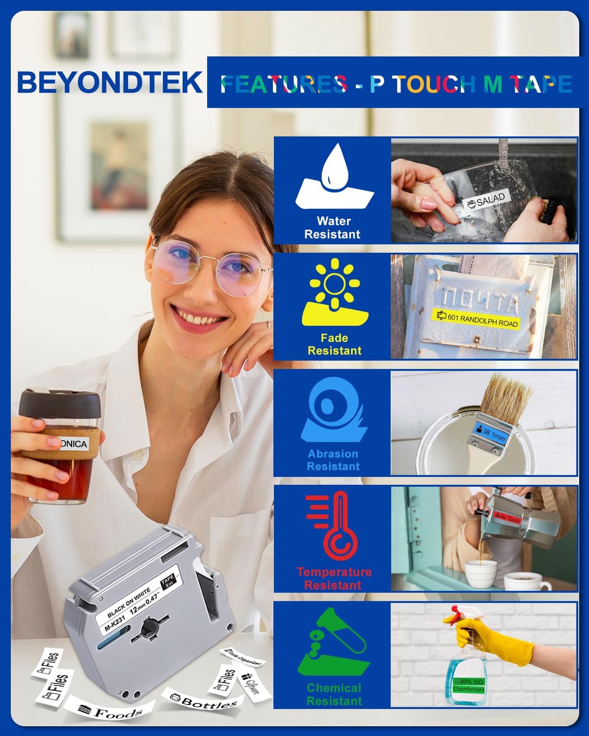 - 【M Tape Features】- 1.MK231 Tapes are Split Backing for Easy Peeling. 2.Prints Clearly and No Sticky Residue when the Label is Removed..