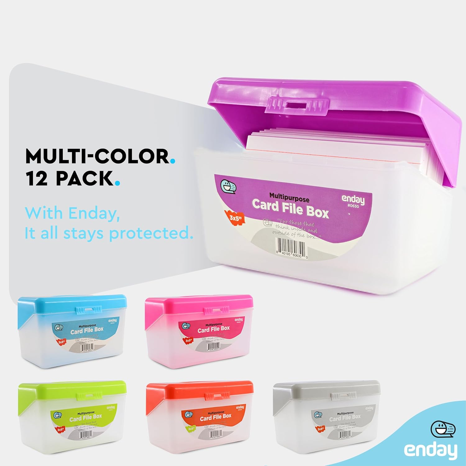 Emraw Index Card holder Case 3" X 5", ideal box card holder for Filing Notes, Addresses & Recipes. Holds Up to 250 Cards, Grey, Pink, Purple, Blue (Pack of 12)