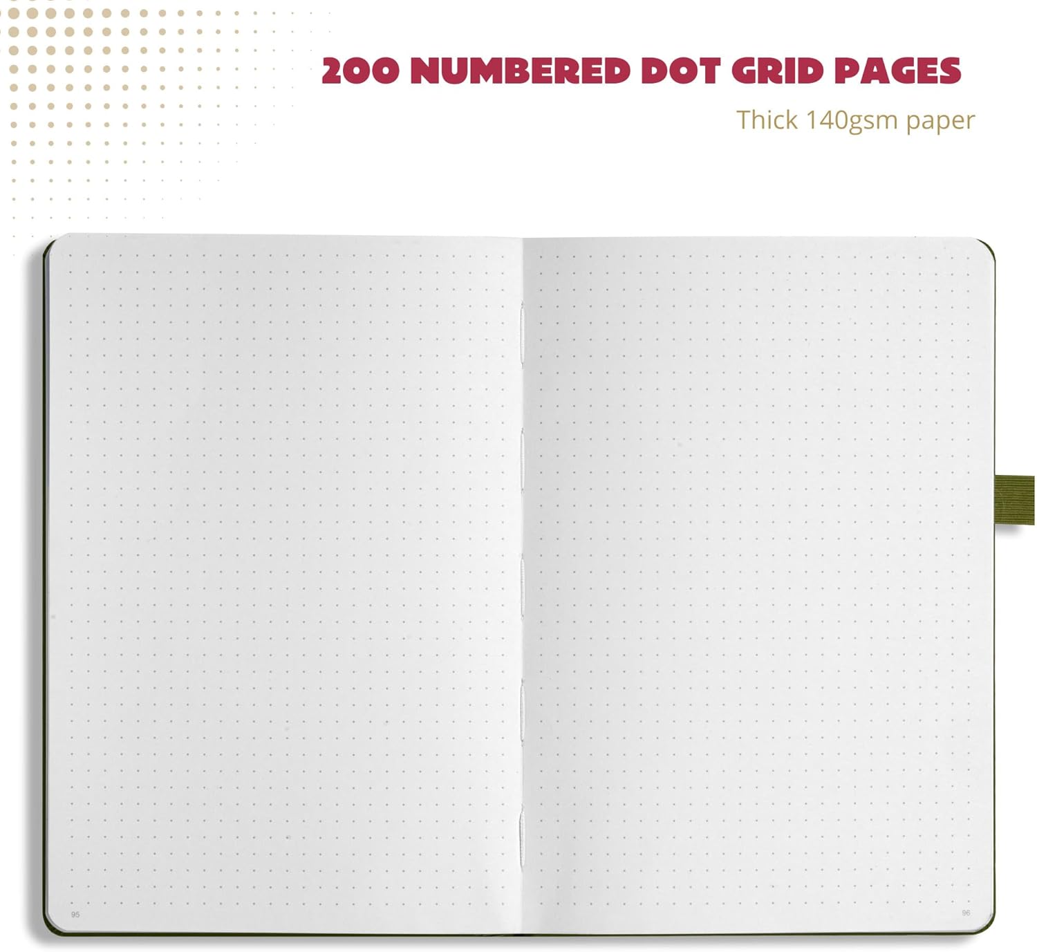 - 200 Numbered Dot Grid Pages for Easy Organization: Designed for ultimate convenience, this dotted notebook features 200 numbered pages to keep track of ideas, notes, and sketches effortlessly. Whether you’re using it as a dot journal or for planning, the structured layout enhances productivity.