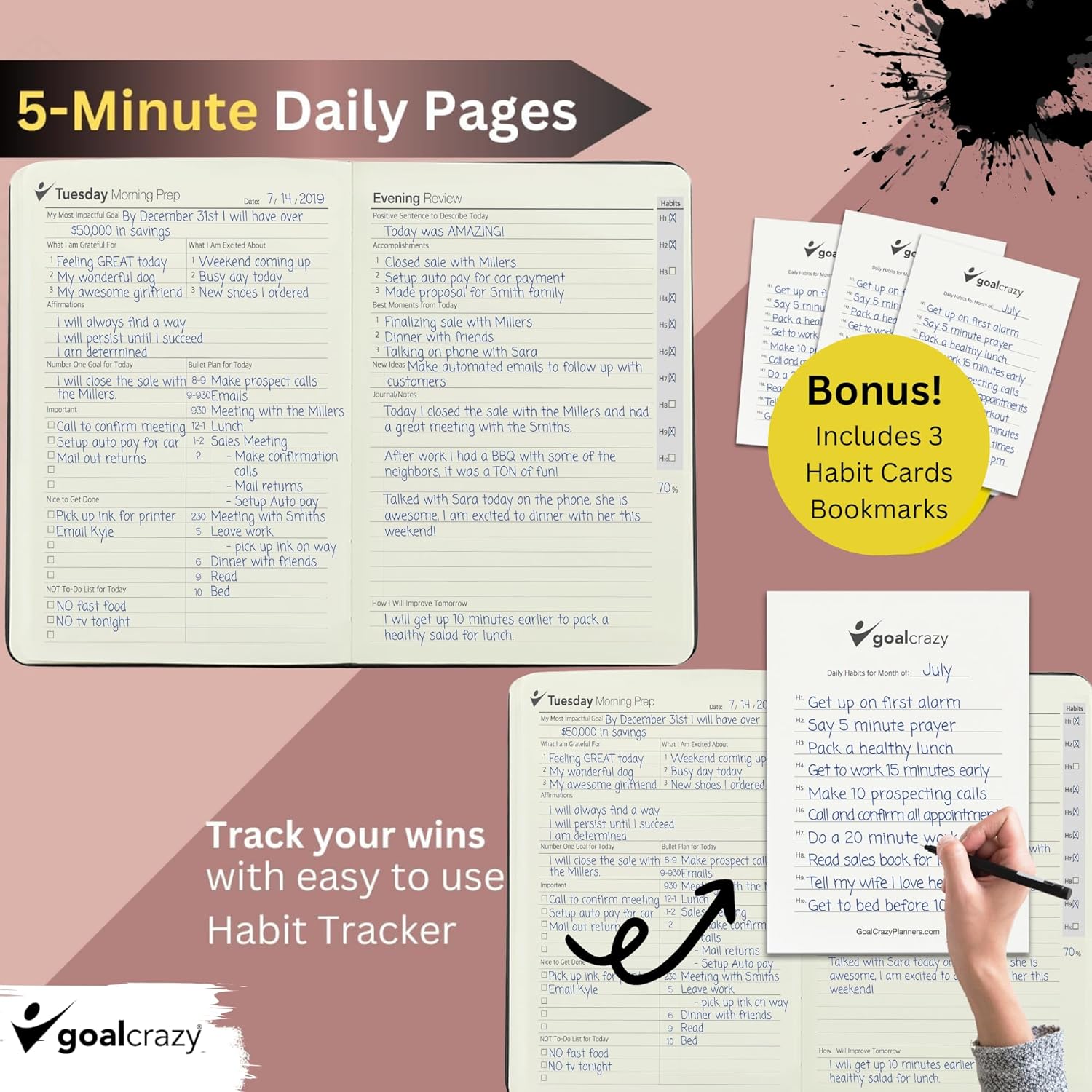 - BONUS HABIT CARDS FOR CONSISTENCY & FOCUS – Includes 3 detachable habit card bookmarks to track daily routines and build lasting habits. Use this undated planner as your productivity organizer, academic planner, or work diary to stay focused and consistent every day.