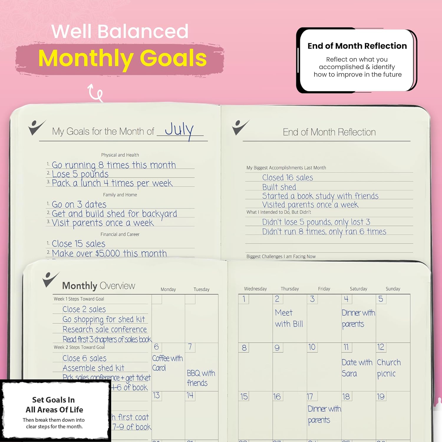 - BALANCED LIFE ORGANIZATION – Built-in sections guide you through setting long-term and monthly goals, weekly priorities, and end-of-month reflections. Great for professionals, students, business owners and entrepreneurs looking for better time management and balance.