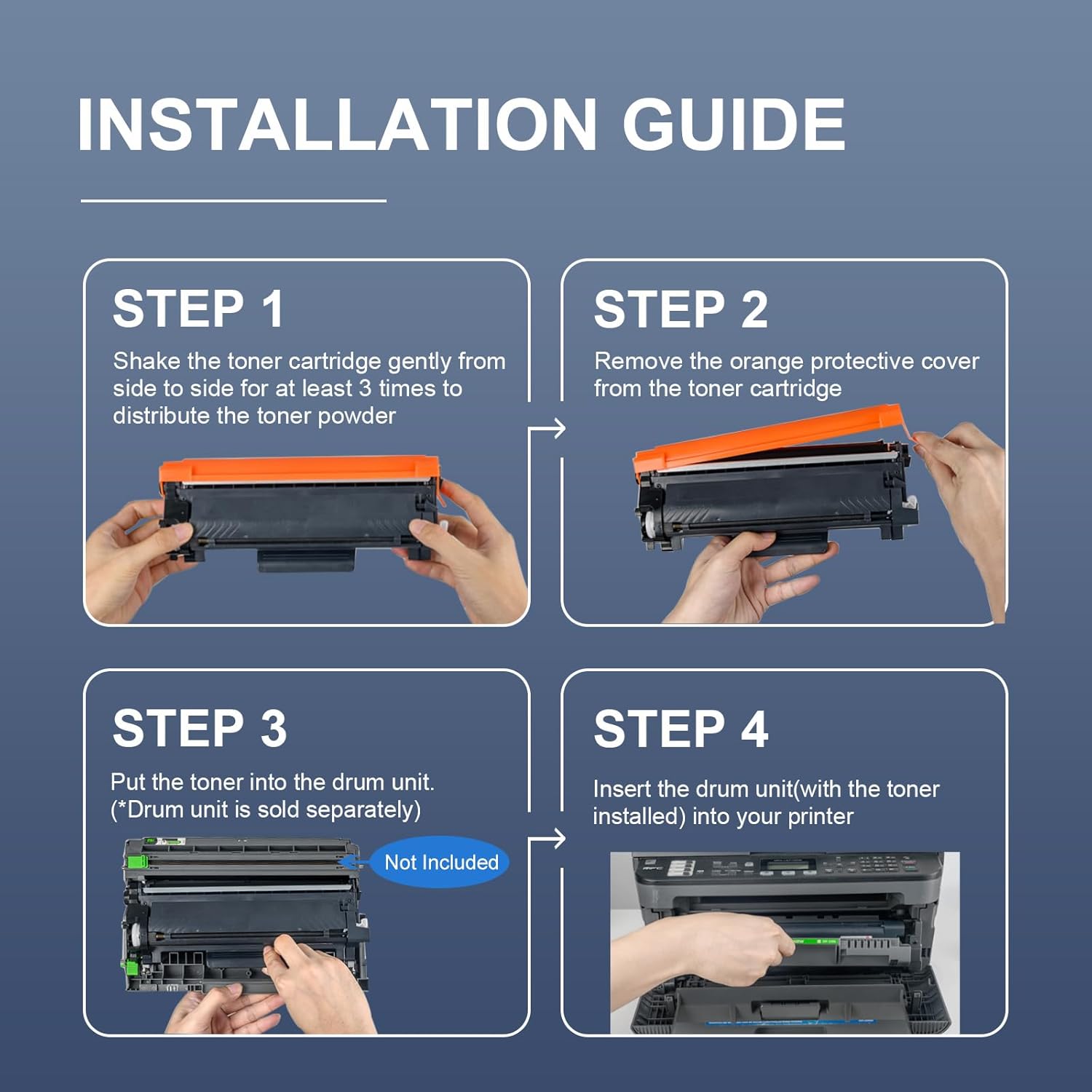 - ăPackage Contentsă: 1 x User Guide, 4 x Comatible TN760 toner for brother printer mfc l2710dw toner cartridge, Comatible for brother mfc-l2750dw toner, Comatible for brother hl-l2350dw toner, mfc-l2710dw toner, Comatible for brother dcp-l2550dw toner, Comatible for brother hl-l2395dw toner cartridge, Comatible for brother hl-l2390dw toner cartridge, Comatible for brother hl-l2370dw toner.