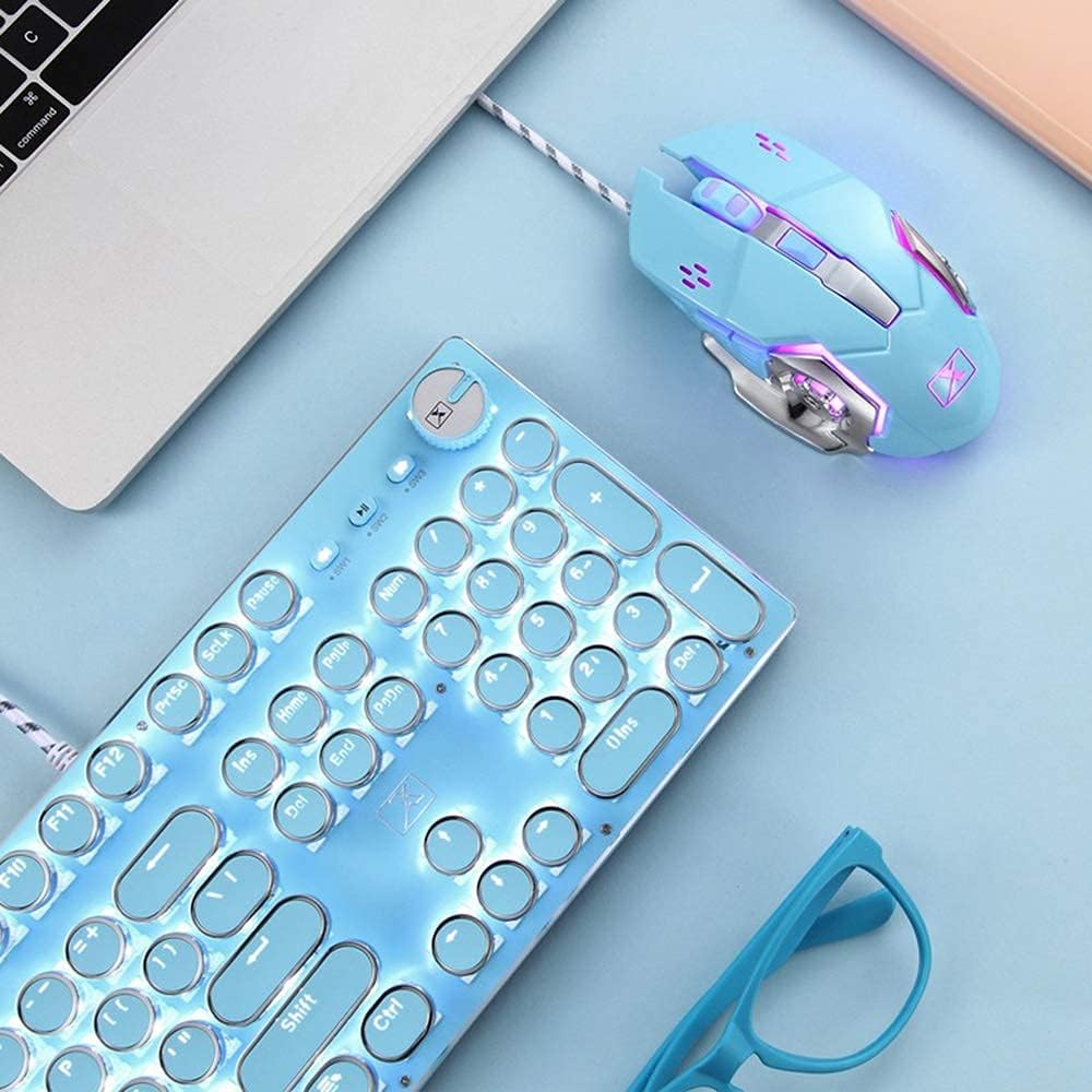 Basaltech Mechanical Gaming Keyboard and Mouse Combo, Retro Steampunk Vintage Typewriter-Style Keyboard with LED Backlit, 104-Key Anti-Ghosting Blue Switch Wired USB Metal Panel Round Keycaps, Blue