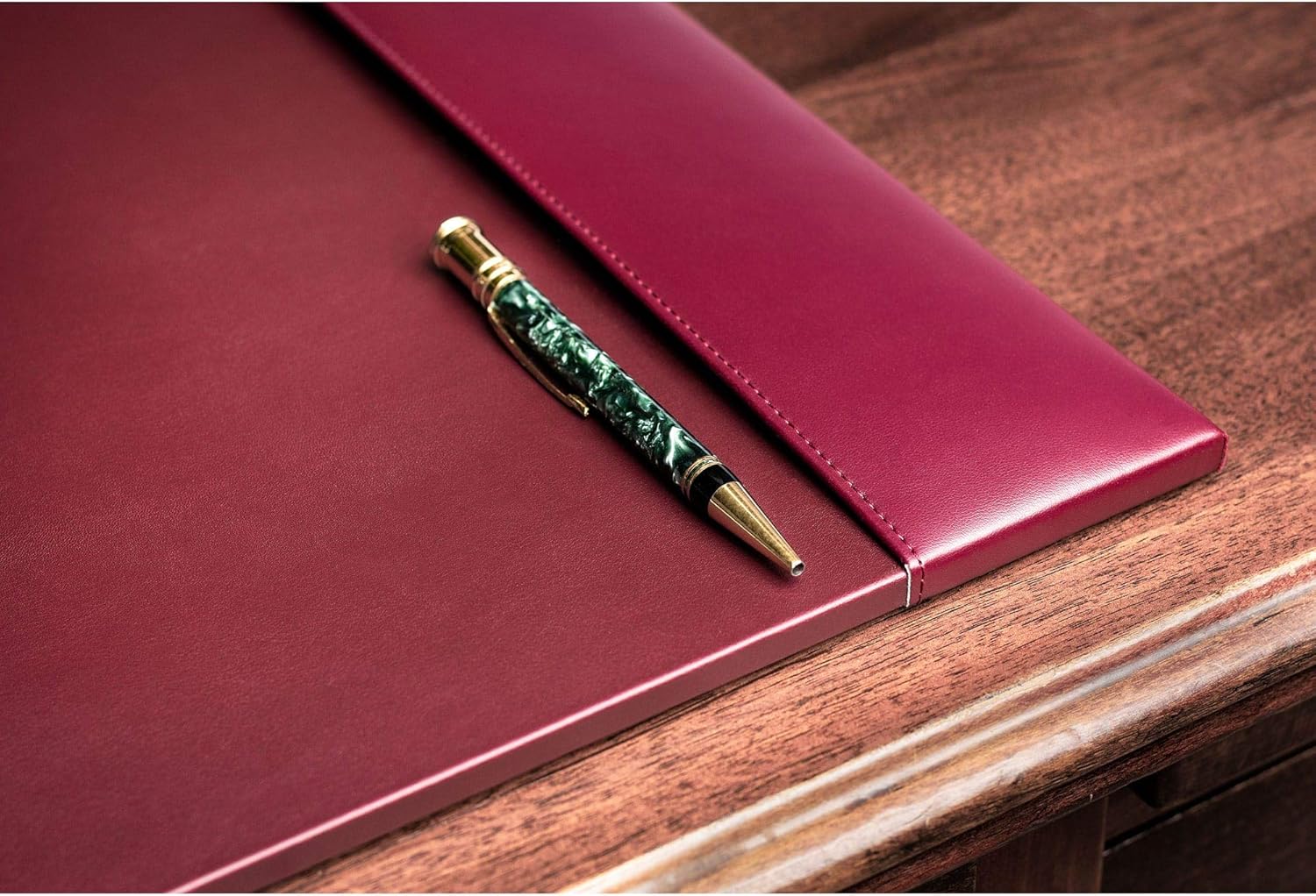 DACASSO Bonded Leather Desk Pad with Side Rails - Luxury Leather Desk Blotter for Writing - Padded Executive Desk Surface Protector - ( Burgundy, 30” x 18”)