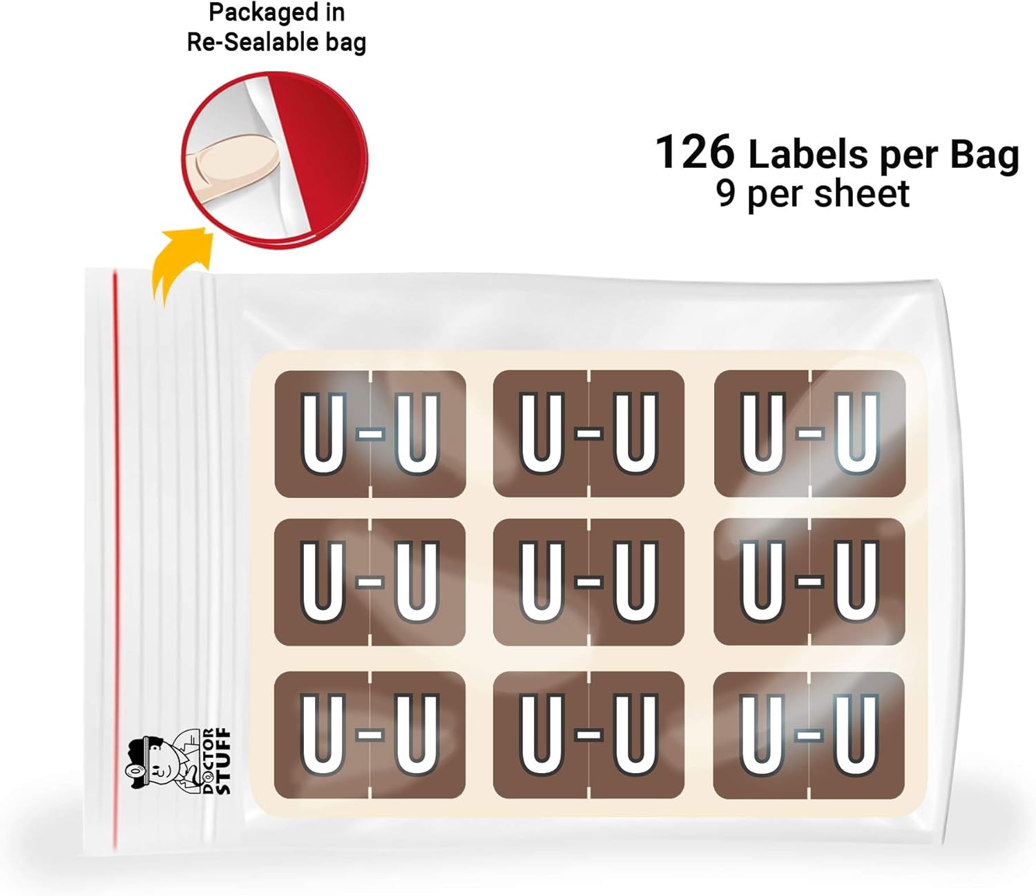 Doctor Stuff - File Folder Labels, Alphabet Letter U, Barkley/Sycom FABKM - BRAM Series Compatible Alpha Stickers, Brown, 1" x 1-1/2", 126 Labels/Package