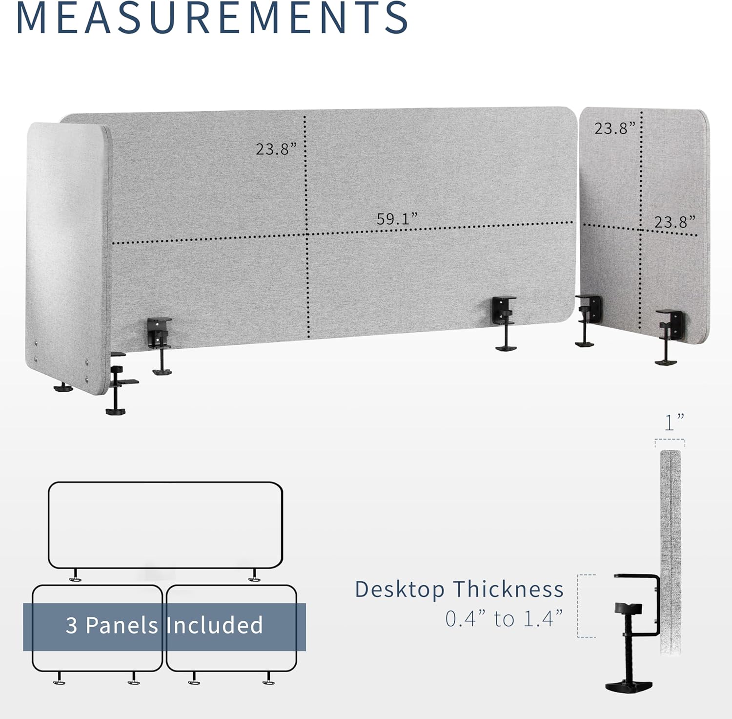 - 3 Clamp-On Privacy Panels: This desk privacy set includes one 60” x 24” panel and two 24” x 24” panels to cover 3 sides of your desk and make your workspace a place of unbroken concentration. Panels can be mounted above or below the desk.