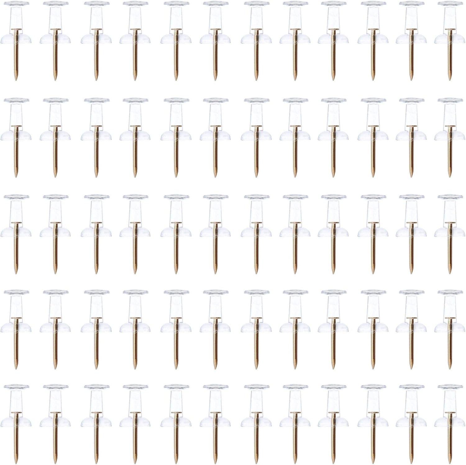 Clear Push Pins 600pcs Standard Thumb Tacks with Rose Gold Steel Point Transparent Plastic Head Pins for Hanging Photo Posters Craft Marking Map Wall Cork Board