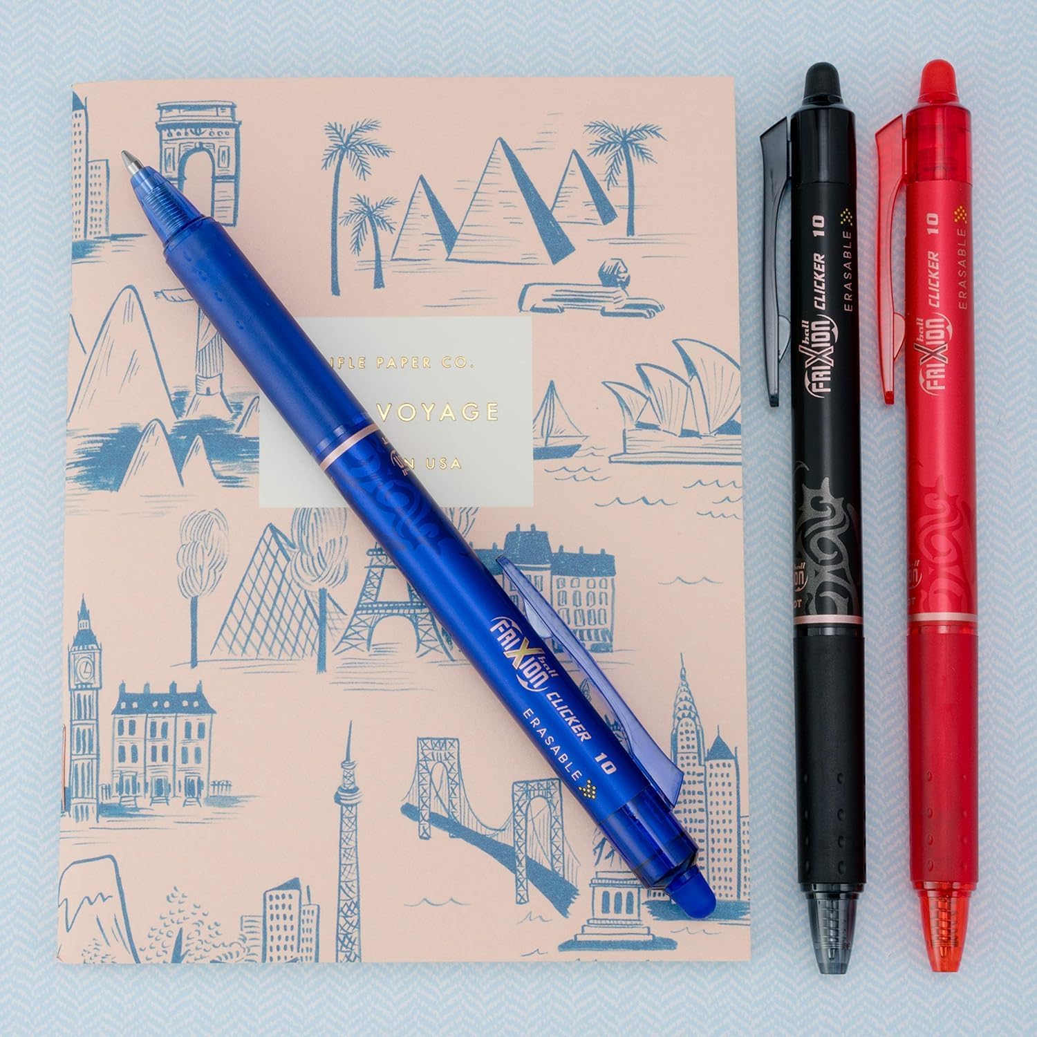 - Frixion Clicker: this pen combines the ease of a retractable pen with erasable thermo-sensitive gel ink. No wear or tear so you can erase & rewrite until it's right without ruining the page.
