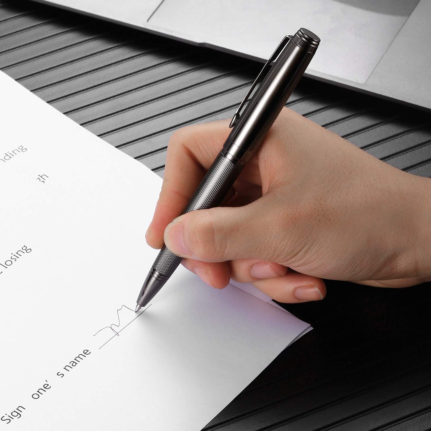 - ★PROFESSIONAL WRITING TOOL––– Our ballpoint is super-smooth writing experience, rich ink flow,consistent lines, and fairly quick drying. The pen tip writes a powerful bold black stroke effortlessly and consistently. 2 extra refills satisfies your daily use. There is a lot of ink in the refill and it takes a long time to use. Please Search ASIN "B07SYJQR6J”for pen refills.