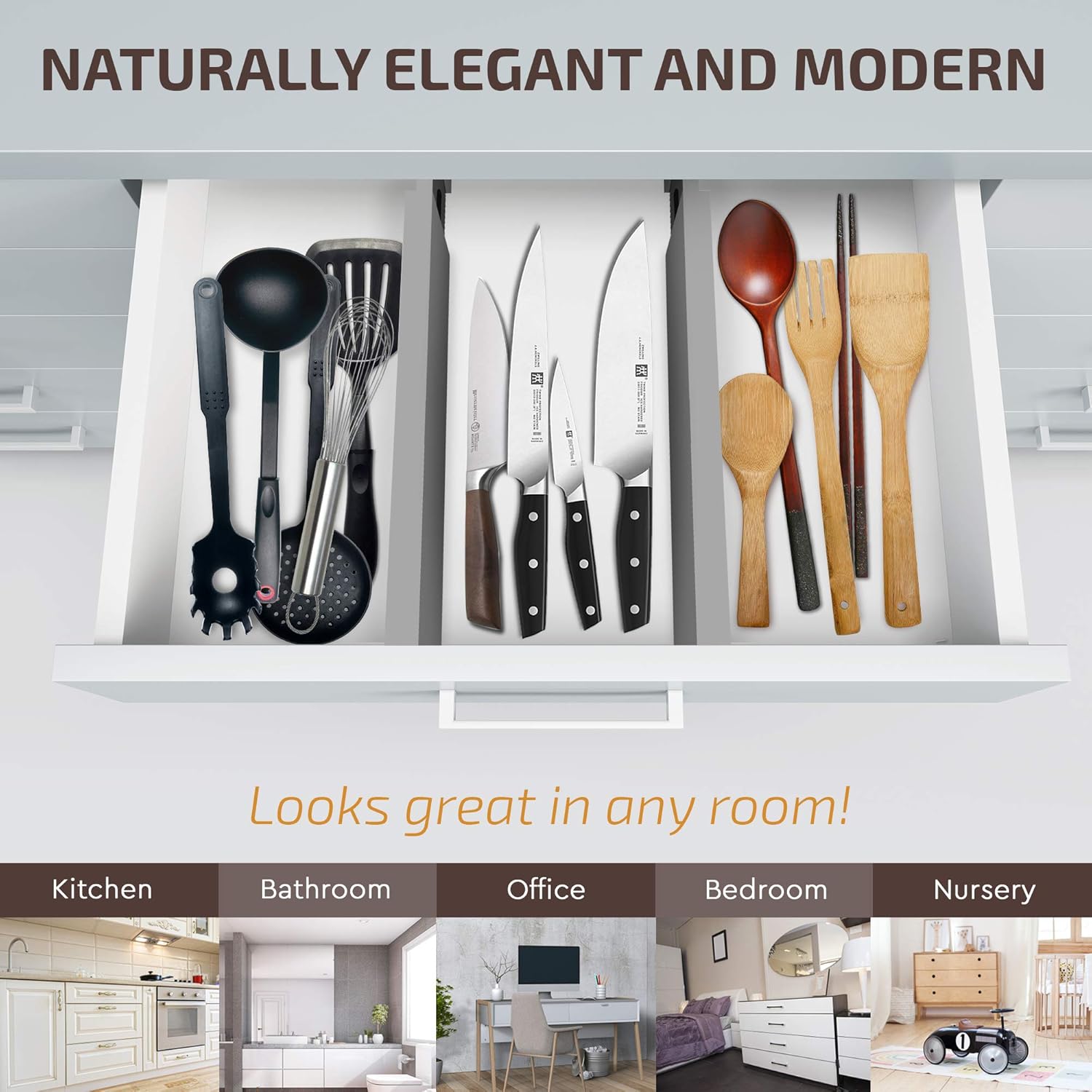 - ✅ ESSENTIAL ORGANIZATION TOOL: Keep your spaces tidy and efficient with our bamboo drawer dividers. Perfect for kitchens, offices, bedrooms, and bathrooms, these dividers help maintain order and make every item easy to find.